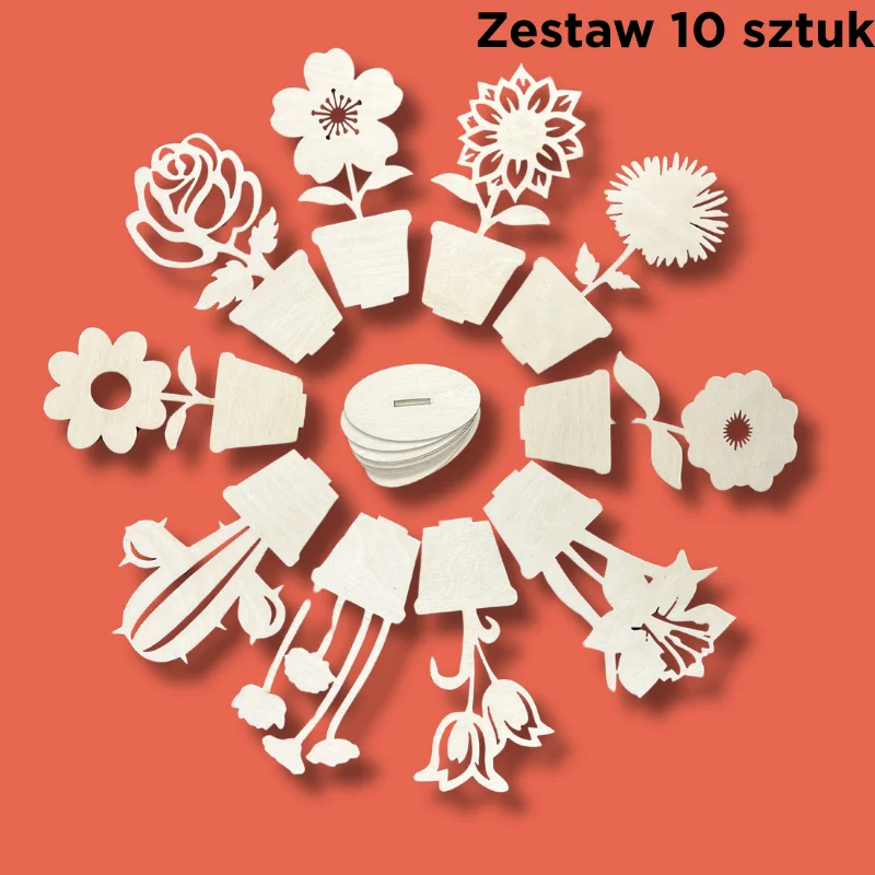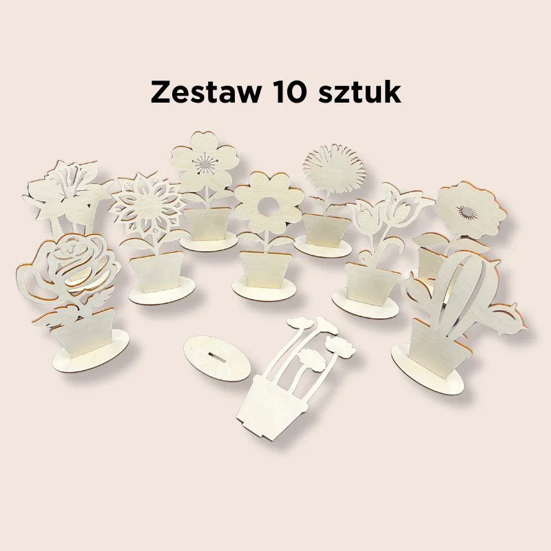 Kwiatki drewniane do ozdabiania 10 SZTUK
